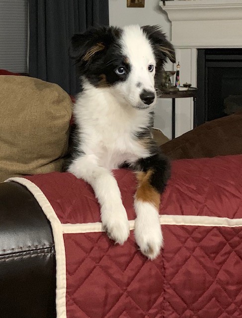 Eva is our Toy Black Tri female who is 9 lbs and 12″ tall. She is the leader of the pack and very active. She is even tempered, loves to get all the attention and will snuggle up for a cuddle anytime. She is very intelligent and has exceptional champion quality. She is strong, fast and the protector of the pack. She is a wonderful mama and very protective of her puppies. She has soft beautiful black white and rich copper fur and piercing blue eyes.